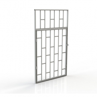 Комплектация: сдвижное полотно, разборная рама, крепежные элементы, проушины для навесного замка